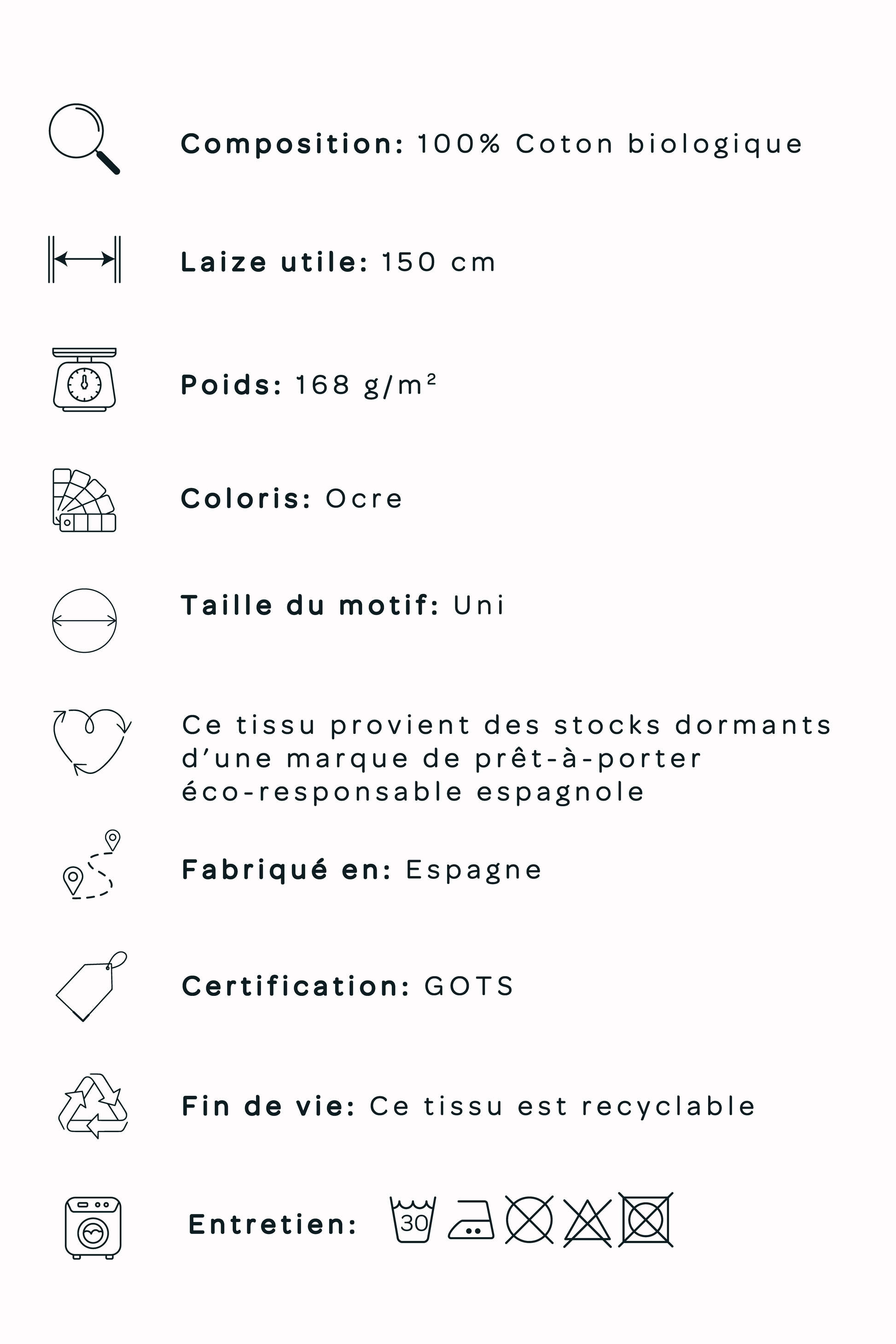 Cette flanelle de coton biologique, avec sa nuance Ocre profonde et lumineuse, et sa douceur sera parfaite pour coudre des pièces aussi élégantes que confortables.
