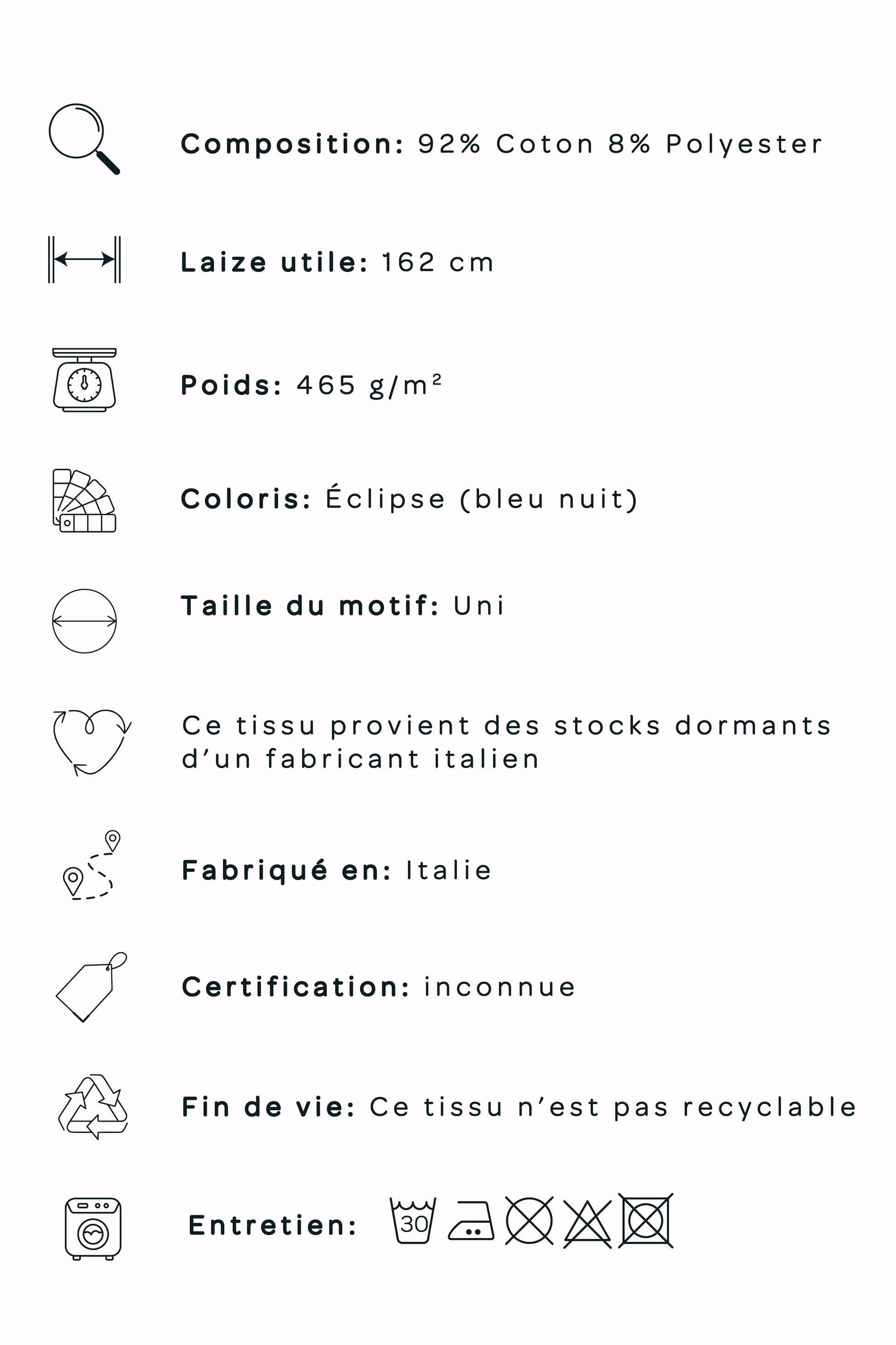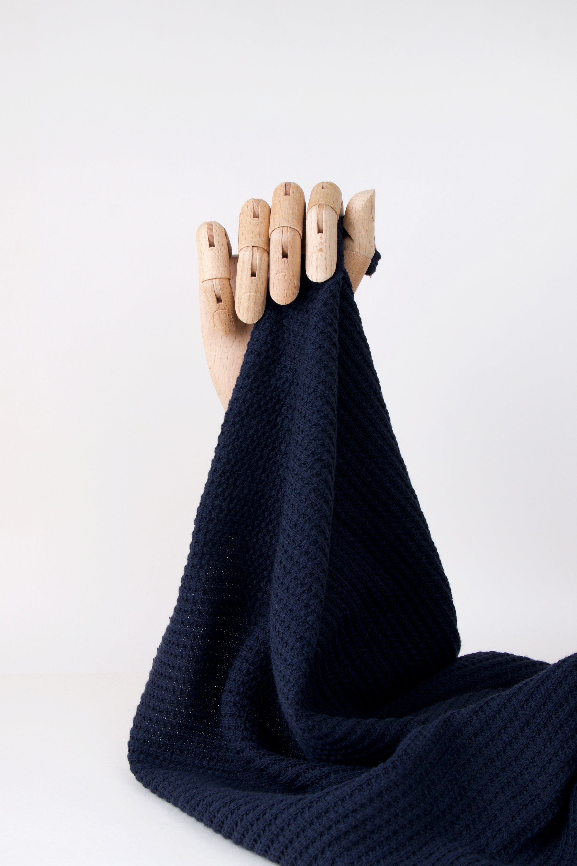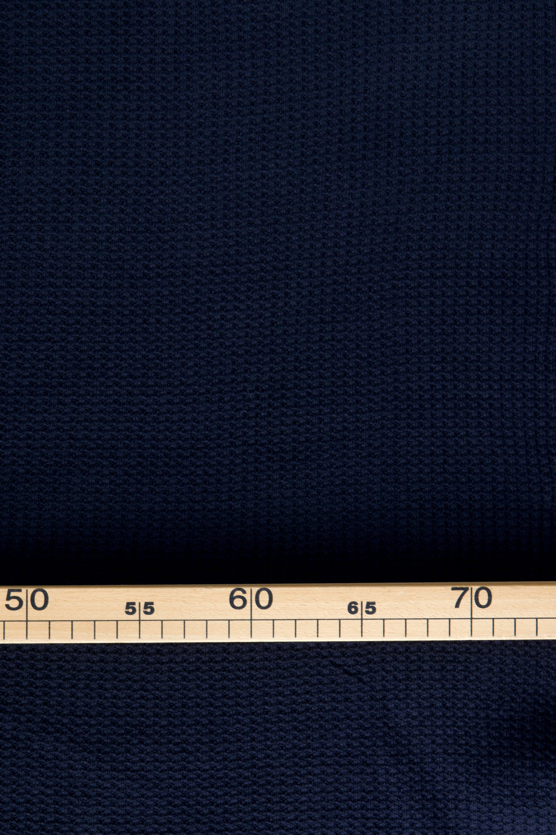 Cette maille de coton bleu marine est la matière idéale pour vos créations d’automne-hiver.