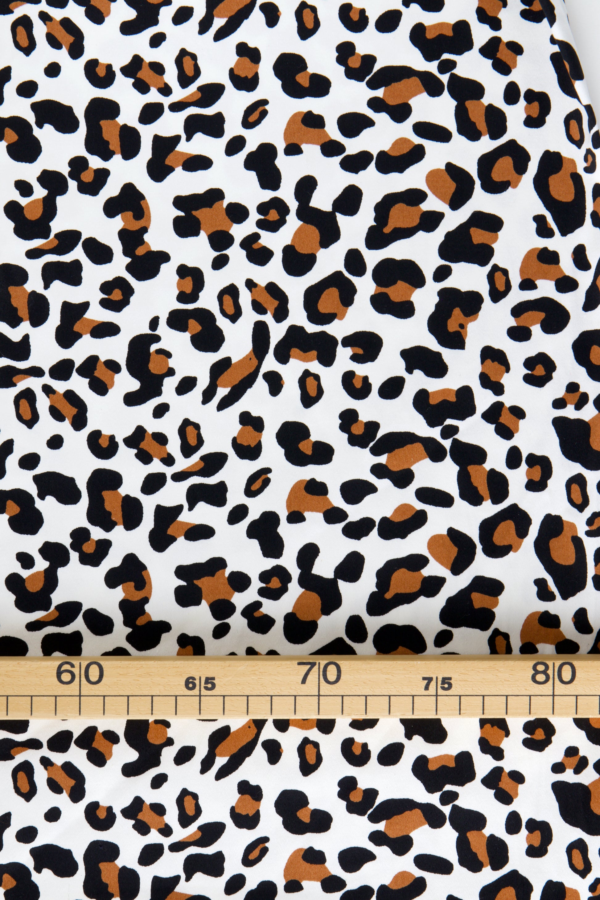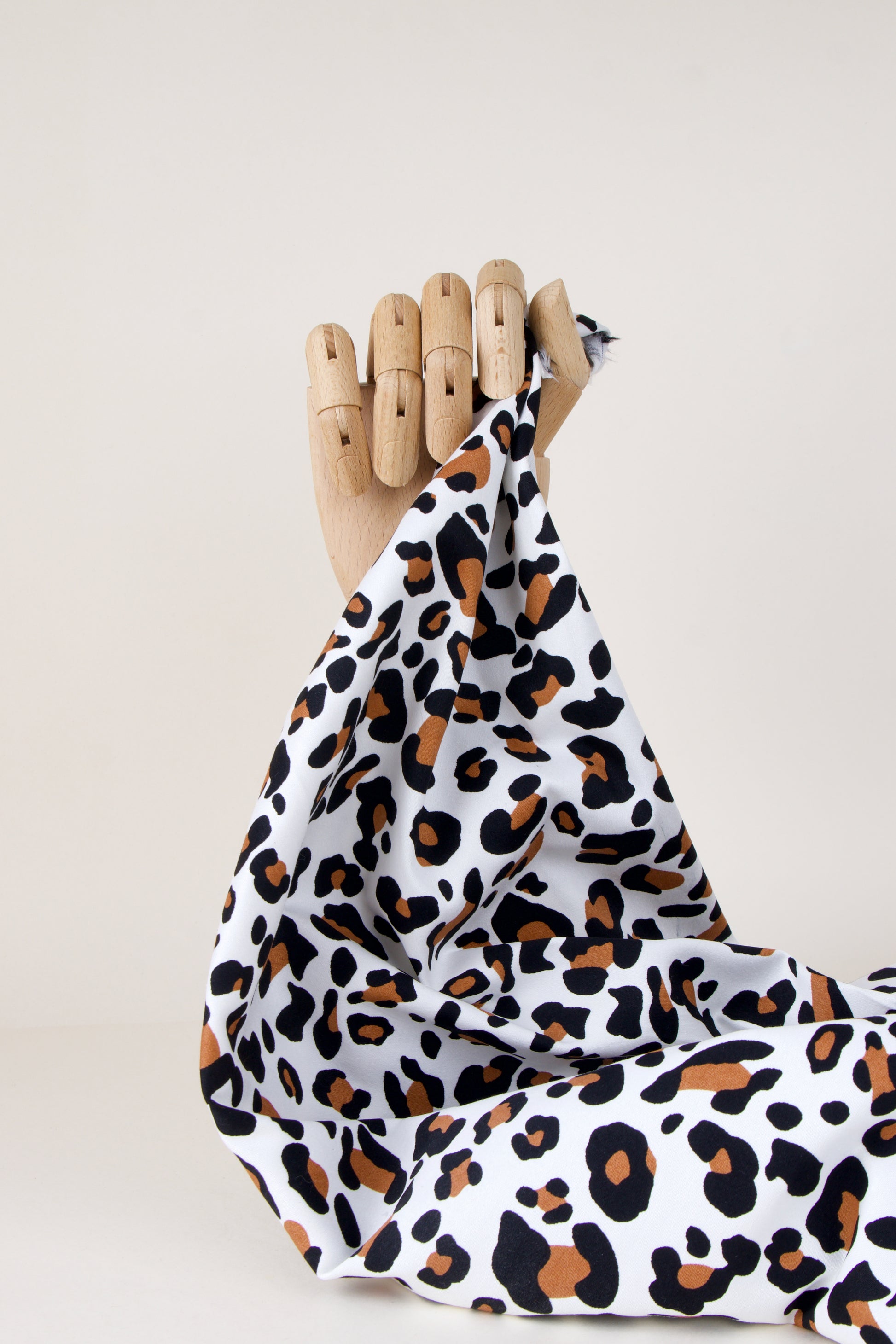 Ce satin de coton à l'aspect mat, avec son motif graou 🐆 noir, caramel sur fond écru, sera parfait pour coudre des pièces automnales et tendances.